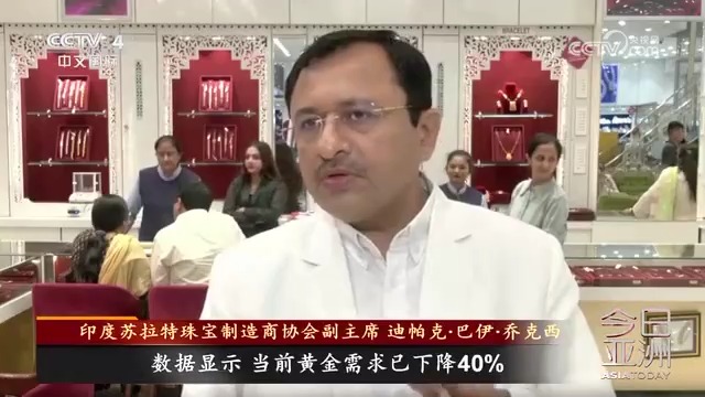 印度某珠宝店店主 穆克什·巴伊:由于金价涨得过高,多数人已无力购买新黄金首饰,因此许多顾客选择以旧换新,目前50%至60%的客户都在用旧黄金兑换新首饰。